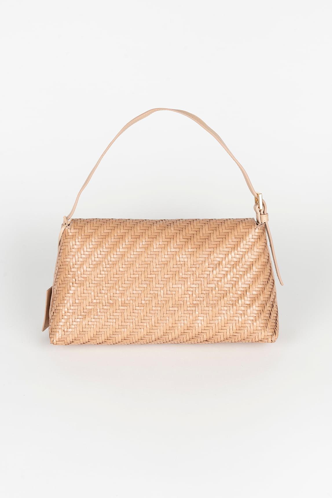 Este bolso compacto presenta una silueta rectangular definida con solapa frontal que estructura el diseño y aporta equilibrio visual. La superficie está completamente trabajada en trenzado fino en patrón espiga, creando una textura uniforme y elegante que añade profundidad. Incorpora asa corta ajustable con herraje metálico en tono dorado, manteniendo una estética limpia y funcional. Su formato ligero lo convierte en una opción práctica para llevar lo esencial con comodidad. En términos de estilo, es un modelo cálido y sofisticado. El tono avellana aporta un matiz tostado equilibrado, menos intenso que el cuero y más profundo que un camel claro, lo que facilita su combinación con blancos, negros, crudos o gamas tierra. Su proporción compacta lo convierte en un complemento versátil tanto para el día como para ocasiones más cuidadas. Pensado para acompañar con discreción y carácter, este bolso suma textura y coherencia estética en un tamaño reducido. Es una pieza funcional dentro de la categoría, diseñada para elevar estilismos cotidianos con naturalidad y elegancia. Nos esforzamos por mostrar los colores de la forma más fiel posible, pero pueden variar ligeramente respecto a la realidad.