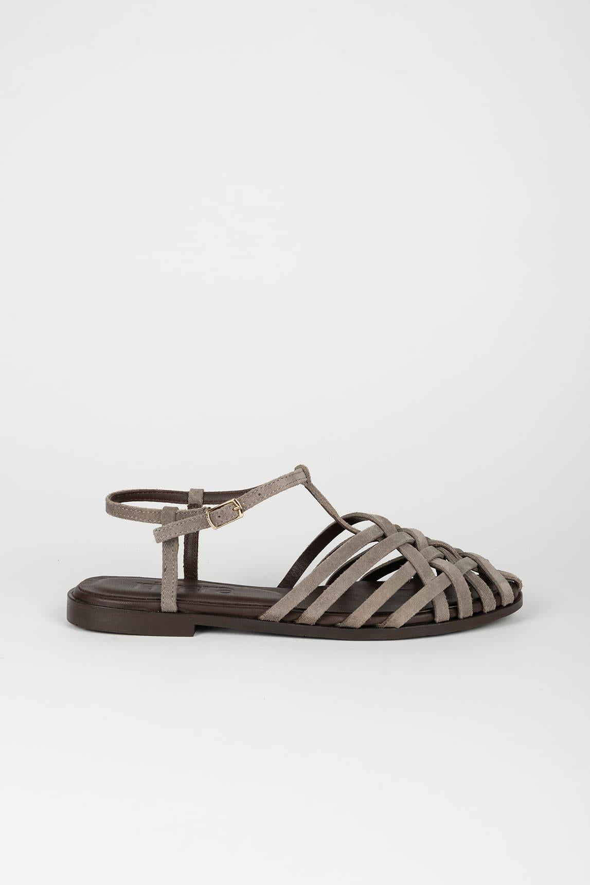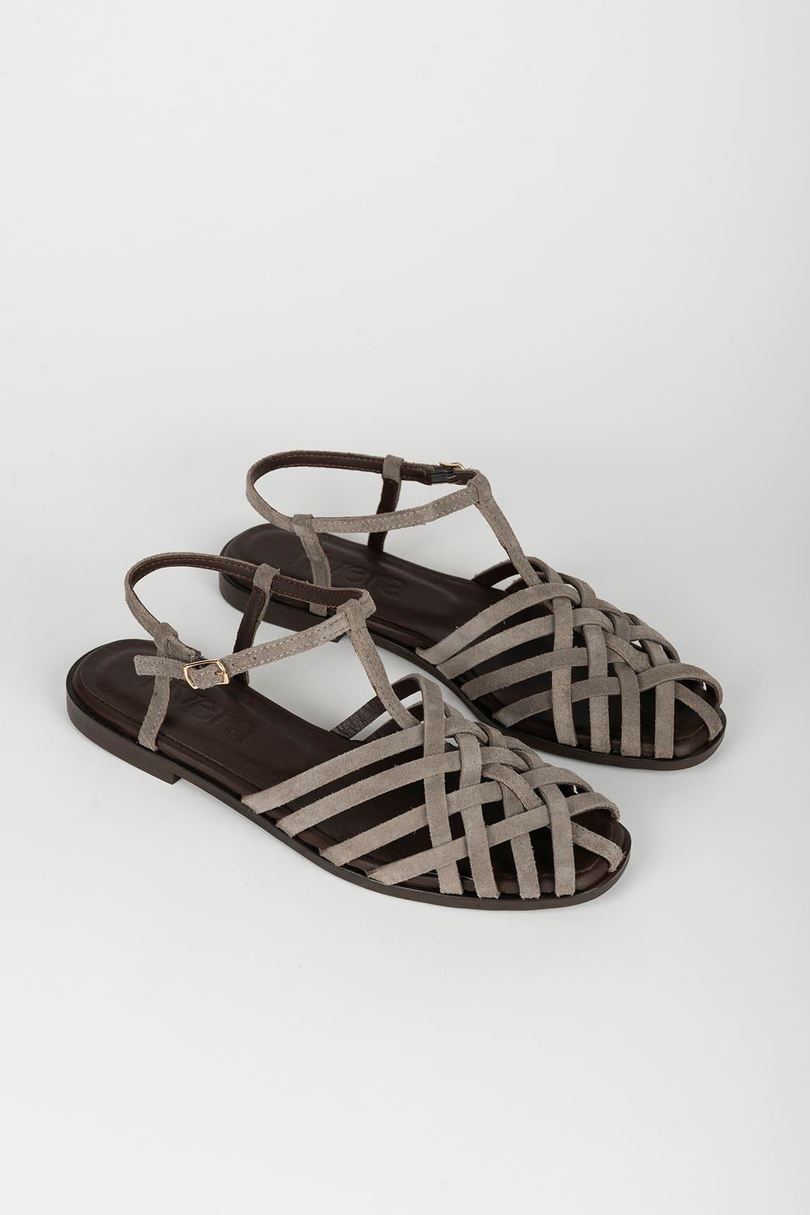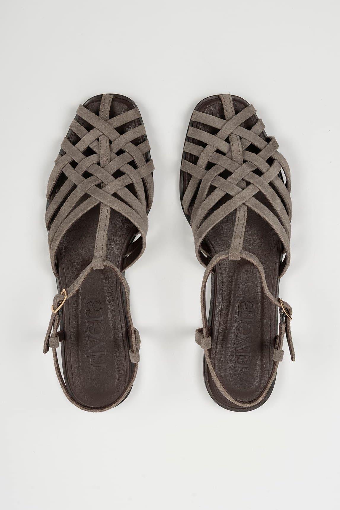 La sandalia cangrejera Lareth visón reinterpreta el diseño clásico de tiras entrecruzadas en una versión refinada y contemporánea. Su estructura envolvente cubre el empeine con un entramado fino y equilibrado que aporta carácter artesanal sin perder ligereza visual. Las tiras se cruzan creando un patrón dinámico que estiliza el pie y aporta profundidad al diseño.