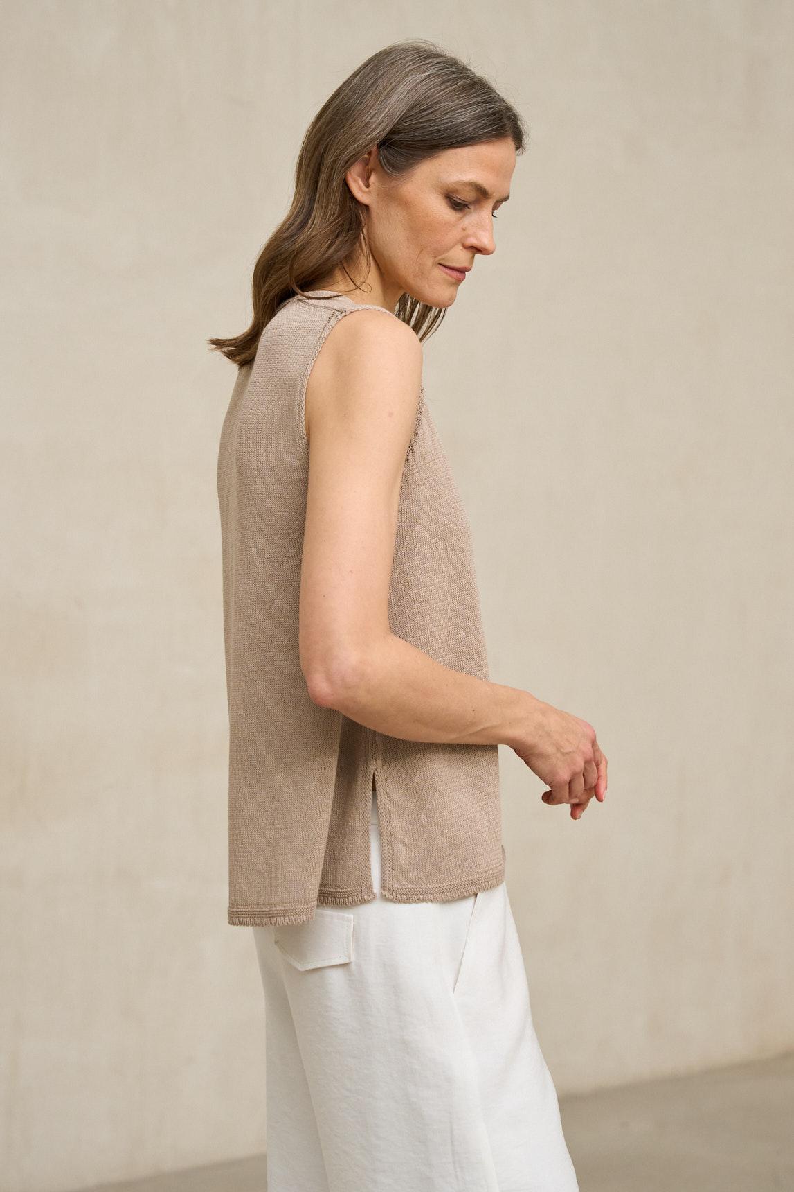 Ideal como top base para estilismos monocromáticos o como pieza versátil dentro de conjuntos más estructurados, el top de punto Virel arena es una prenda pensada para primavera y verano. Aporta serenidad, sencillez y coherencia al armario diario.