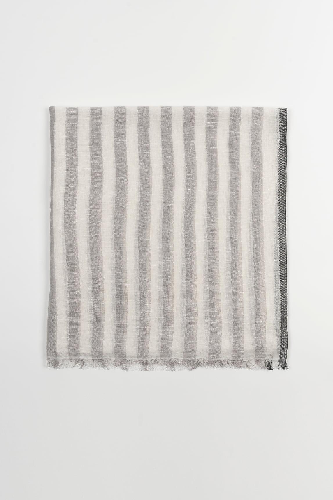 Fular de mujer confeccionado en una mezcla natural de 48 % algodón y 52 % lino. Su tejido ligero y transpirable presenta un diseño de rayas anchas en tonos gris claro y blanco, con un ribete en gris oscuro que enmarca el conjunto. Los extremos deshilachados aportan un acabado artesanal y relajado. El Fular Linoa gris destaca por su elegancia sencilla y su frescura natural. Perfecto para acompañar looks de entretiempo, combina fácilmente con prendas neutras o tonos suaves, aportando un toque de luminosidad y equilibrio. Nos esforzamos por mostrar los colores de la forma más fiel posible, pero pueden variar ligeramente respecto a la realidad.