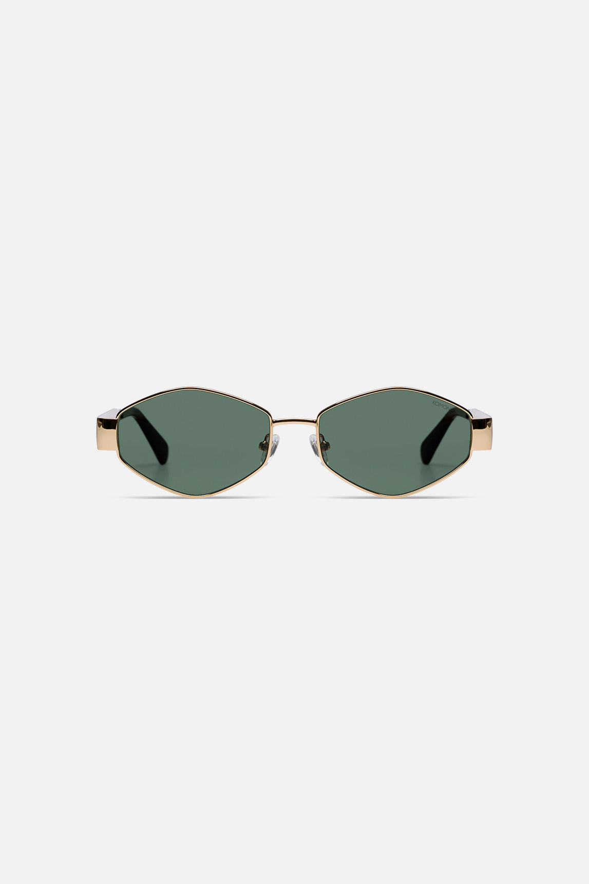 Las gafas de sol Komono Fenix Gold combinan un diseño minimalista con materiales de alta calidad. Su montura de acero inoxidable aporta ligereza y durabilidad, mientras que las lentes verdes ofrecen una protección UV400 eficaz frente a los rayos solares. Un modelo versátil y sofisticado, perfecto para completar looks urbanos o más pulidos con un toque moderno.