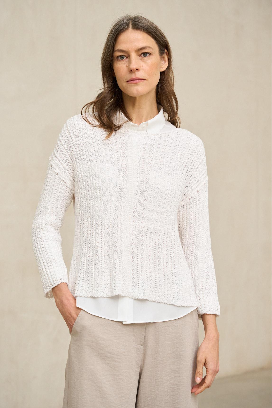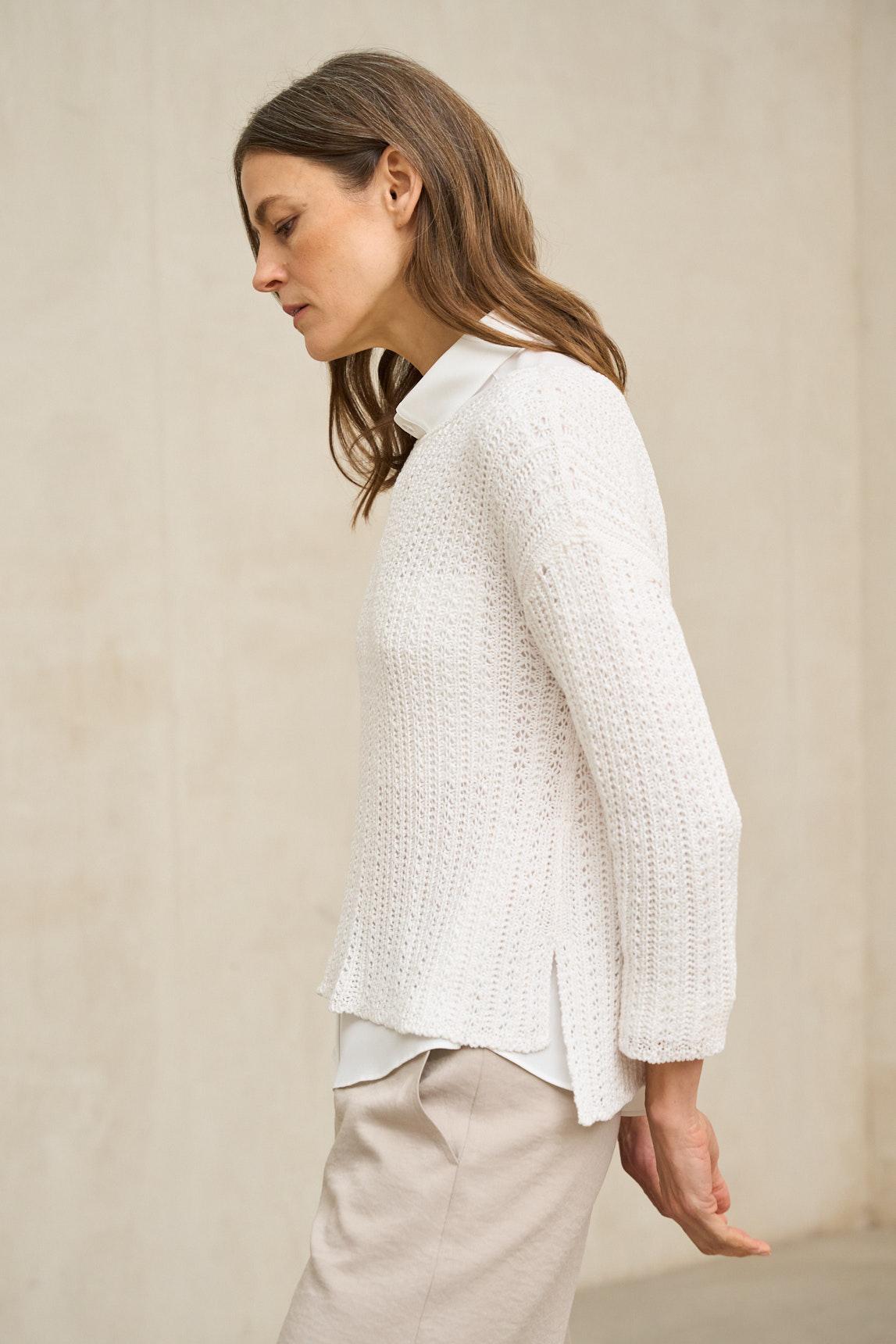 El jersey Nivara crudo es una prenda de punto fino y tacto suave, diseñada con una silueta recta y líneas depuradas que aportan elegancia natural. Presenta escote redondo limpio y manga larga, con una caída ligera que acompaña el movimiento sin ceñir la figura. El bajo ligeramente asimétrico con pequeñas aberturas laterales aporta fluidez y facilita que pueda llevarse tanto por fuera como parcialmente remetido. Su estructura liviana lo convierte en una pieza ideal para entretiempo o como capa base bajo chaquetas ligeras. El tono crudo refuerza su carácter luminoso y versátil, combinando con facilidad con pantalones en tonos arena, topo, gris o verde oliva. Una prenda atemporal pensada para construir looks serenos, minimalistas y equilibrados. Nos esforzamos por mostrar los colores de la forma más fiel posible, pero pueden variar ligeramente respecto a la realidad.