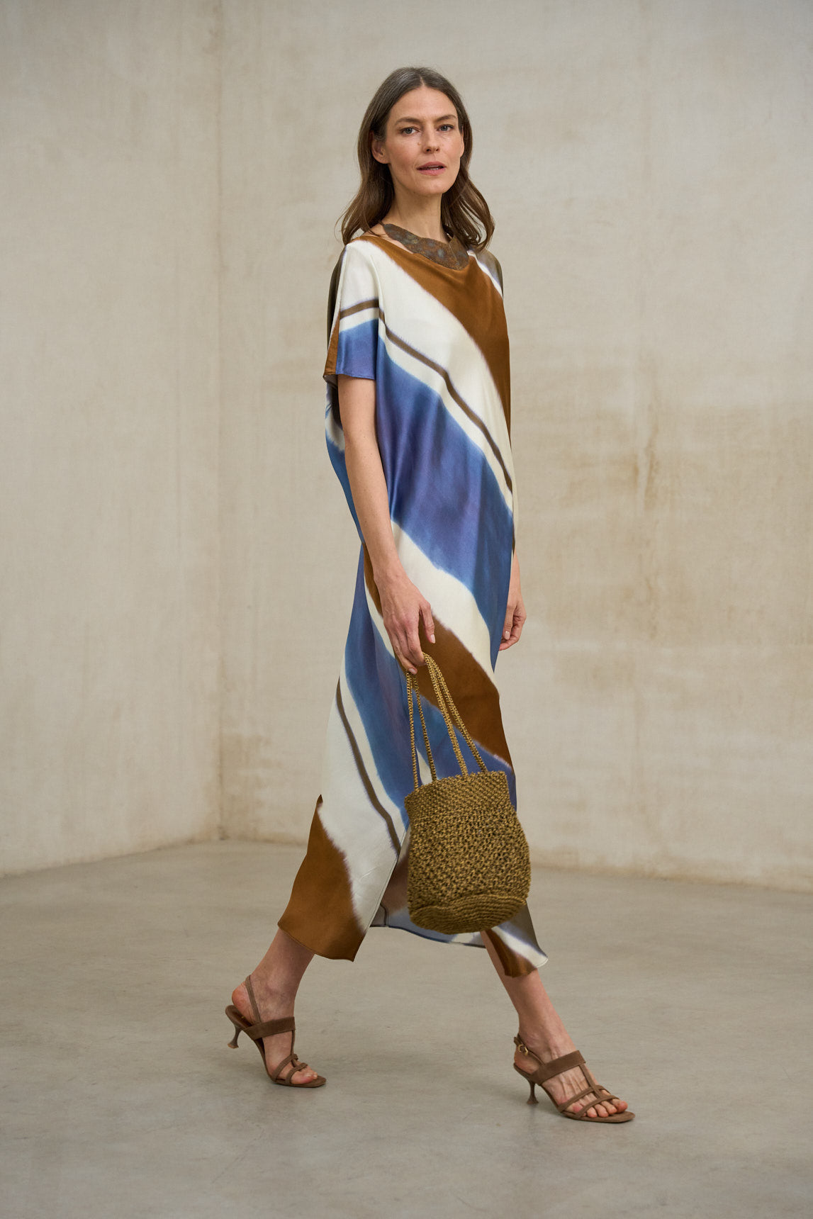 A mala Maelis em tom dourado antigo metálico é uma peça inspirada em joias que combina textura artesanal e brilho sofisticado num tom dourado profundo e quente. O seu design em formato de balde com estrutura flexível em malha metálica torna-a a mala ideal para eventos, casamentos e celebrações especiais onde todos os detalhes importam. O tecido entrançado metálico cria um efeito luminoso contínuo com nuances mais intensas, acrescentando profundidade e personalidade ao design. A sua silhueta arredondada suaviza o aspeto geral e equilibra a proeminência do acabamento brilhante, criando uma bolsa elegante, feminina e contemporânea. A alça longa integrada permite que seja transportada confortavelmente ao ombro, mantendo um ajuste leve e natural. Com dimensões de 17 x 10,5 x 7,5 cm e uma alça de 9,5 x 3,5 cm, oferece um amplo espaço para os essenciais: telemóvel, carteira pequena, chaves e maquilhagem. É a escolha perfeita como mala para visitas, mala de noite dourada ou acessório especial para looks minimalistas que procuram um toque de brilho. A mala Maelis em tom dourado metálico envelhecido é uma peça versátil dentro da categoria das malas especiais: leve, atraente e concebida para acompanhar tanto looks formais como produções mais casuais, com um toque sofisticado e personalidade. Esforçamo-nos por exibir as cores da forma mais precisa possível, mas podem variar ligeiramente da realidade.