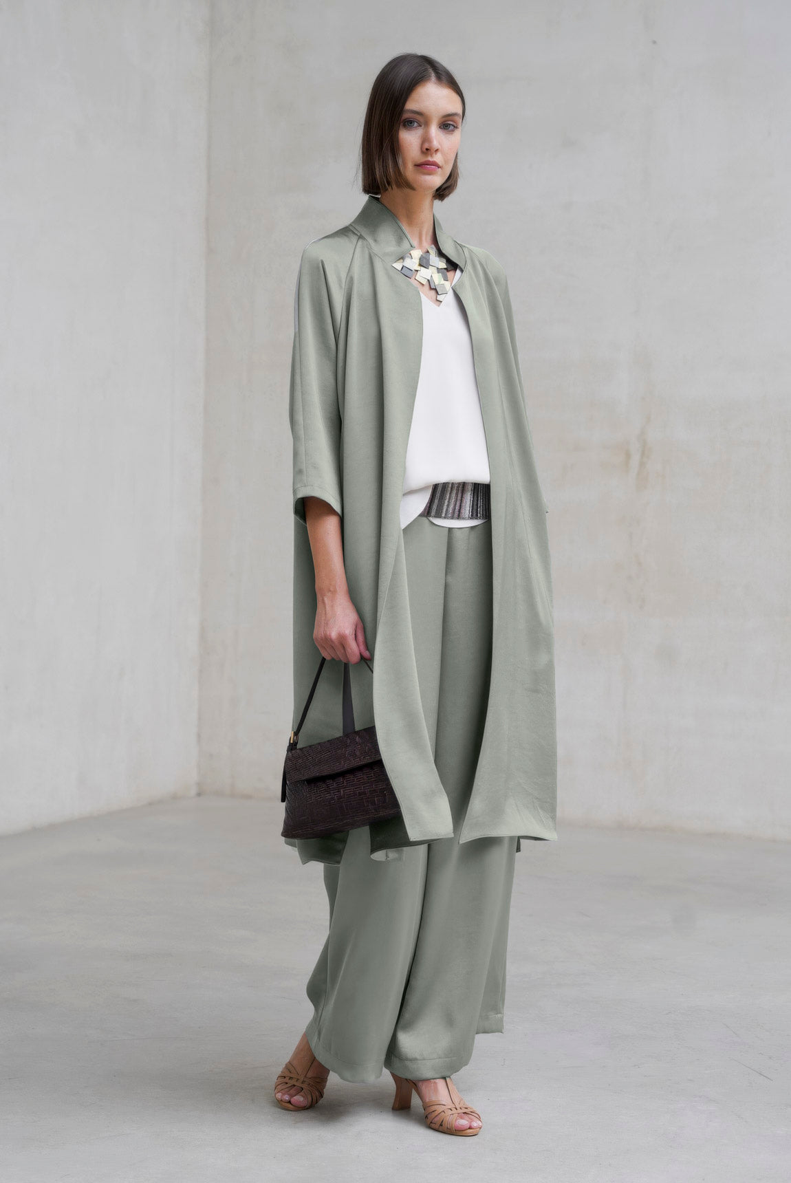 Esta faixa destaca-se pelo design sofisticado e pela combinação de cores original. O tecido estruturado com riscas em verde azeitona, rosa claro, bege e preto confere-lhe um aspeto contemporâneo e versátil, ideal para looks outono-inverno. O interior forrado em preto proporciona um suporte confortável durante todo o dia, enquanto as fitas de gorgorão com pontas metálicas permitem um fácil ajuste na cintura. Um acessório perfeito para realçar casacos, vestidos de malha ou peças neutras com um toque de cor e estilo.