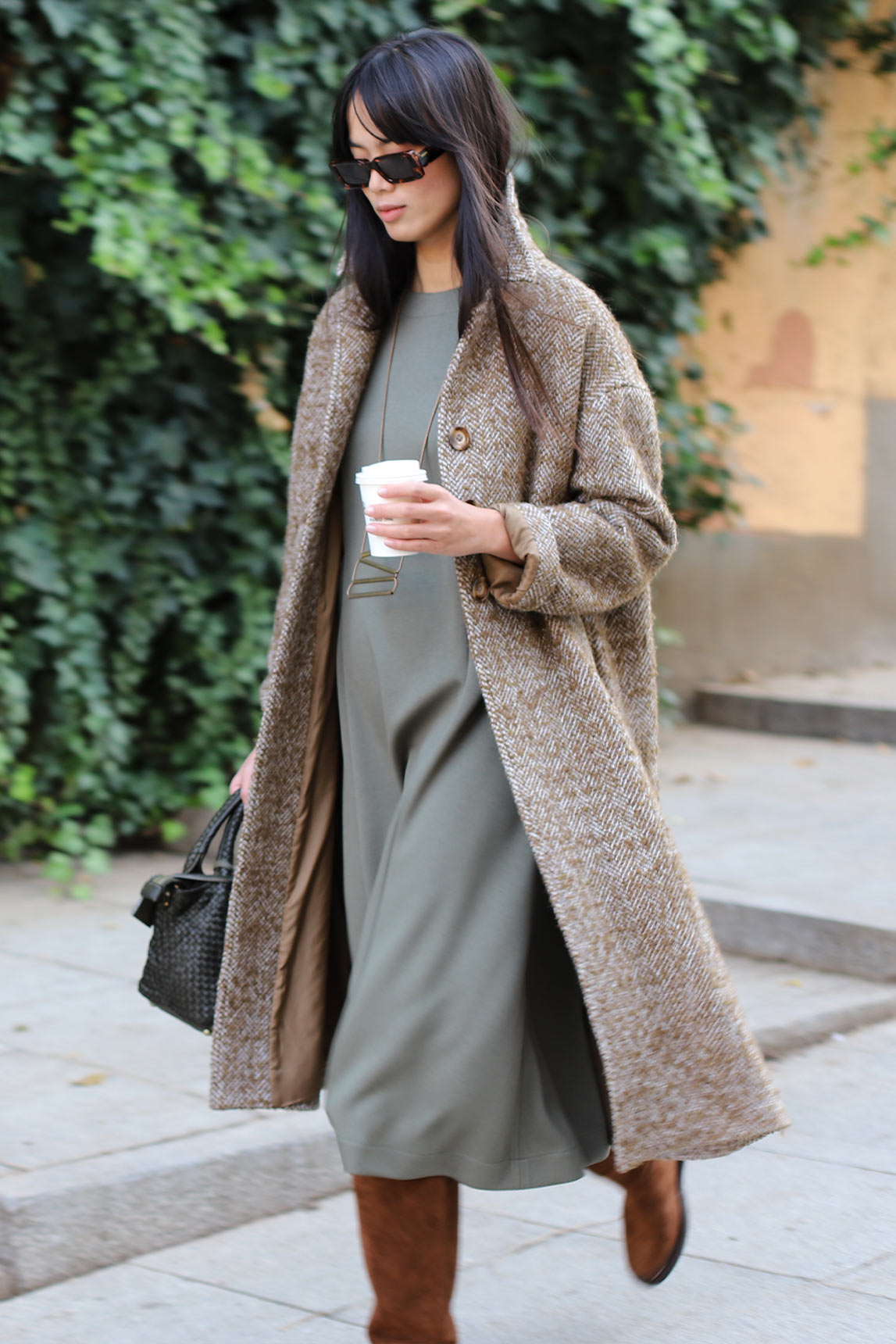 - Vestido midi en verde caqui.
