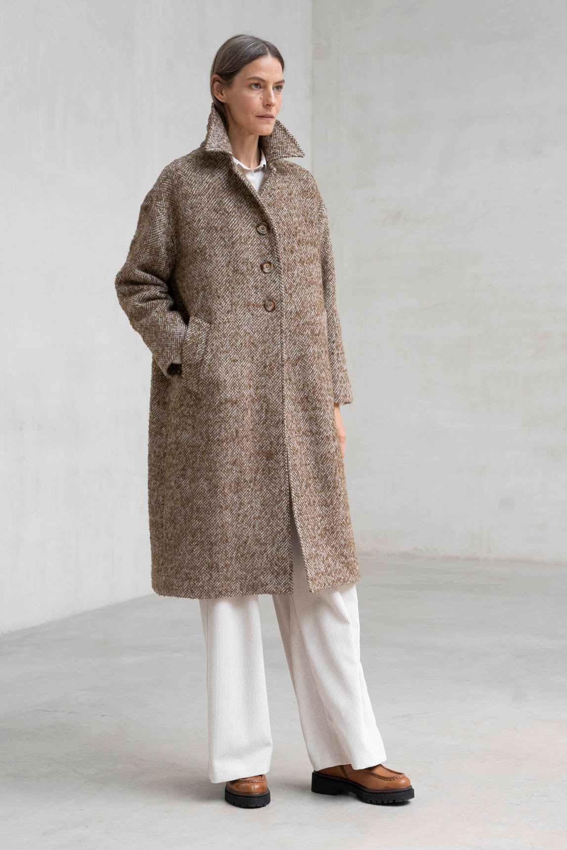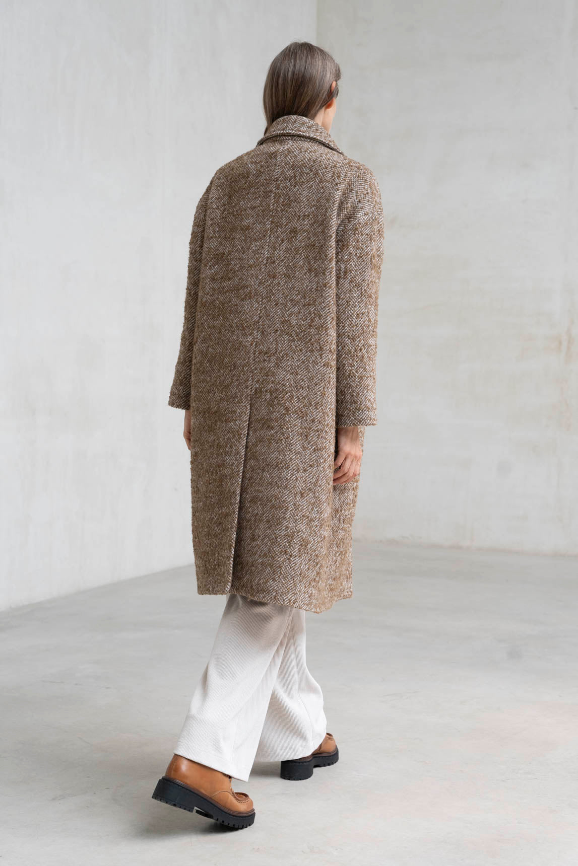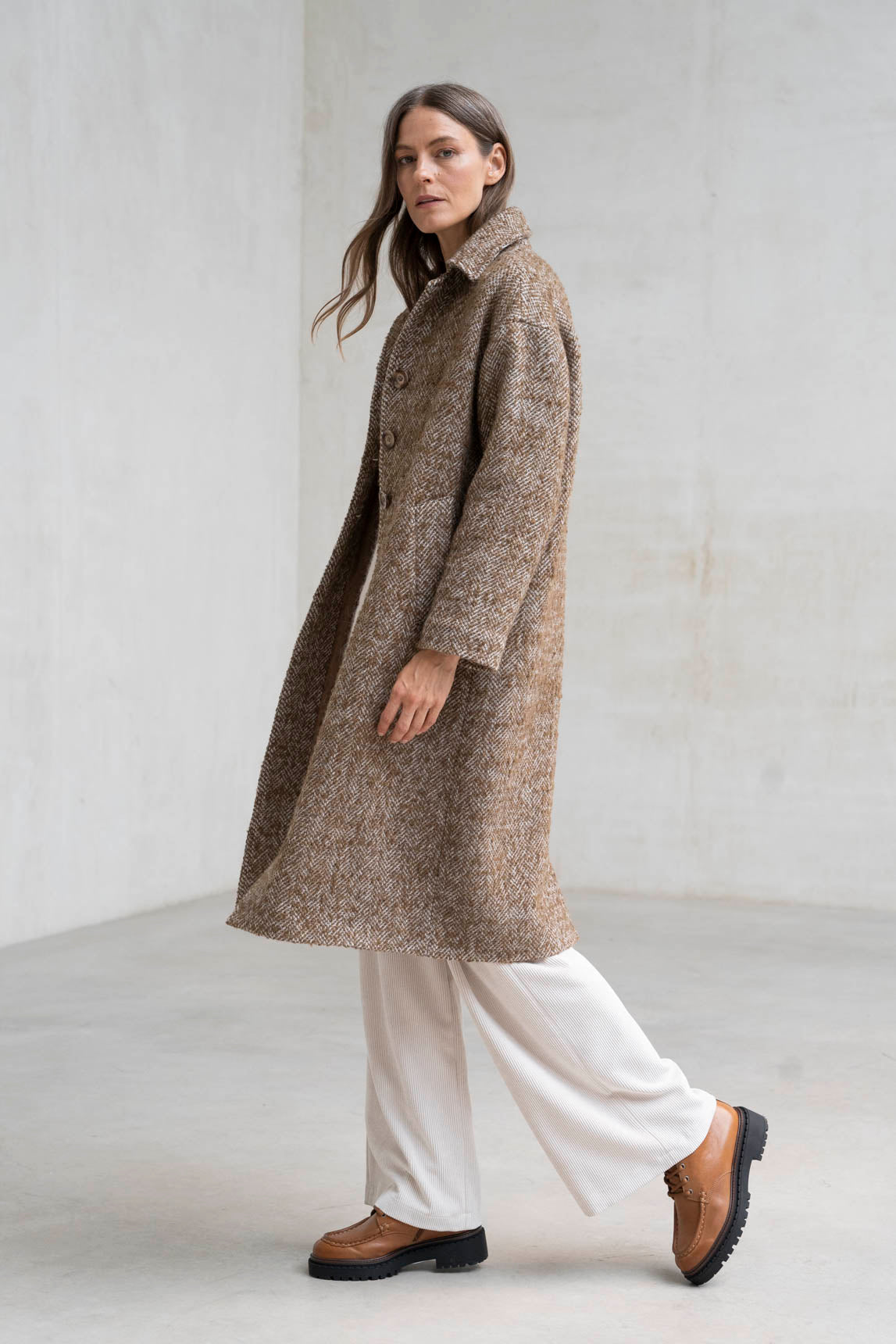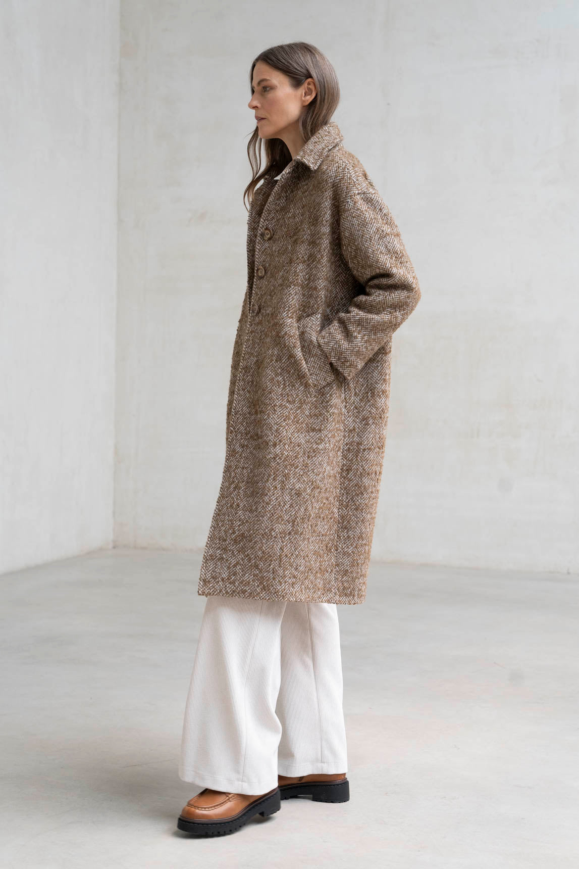 El abrigo Cuneo jaspeado camel combina calidez y estilo en una prenda perfecta para el otoño e invierno. Su tejido de punto grueso aporta textura y confort, mientras que el corte recto y el tono neutro lo convierten en un básico fácil de combinar. Ideal para looks casuales con vaqueros y botines o para estilismos más formales con vestidos y pantalones de sastre, este abrigo es una apuesta segura para completar tu armario de temporada.