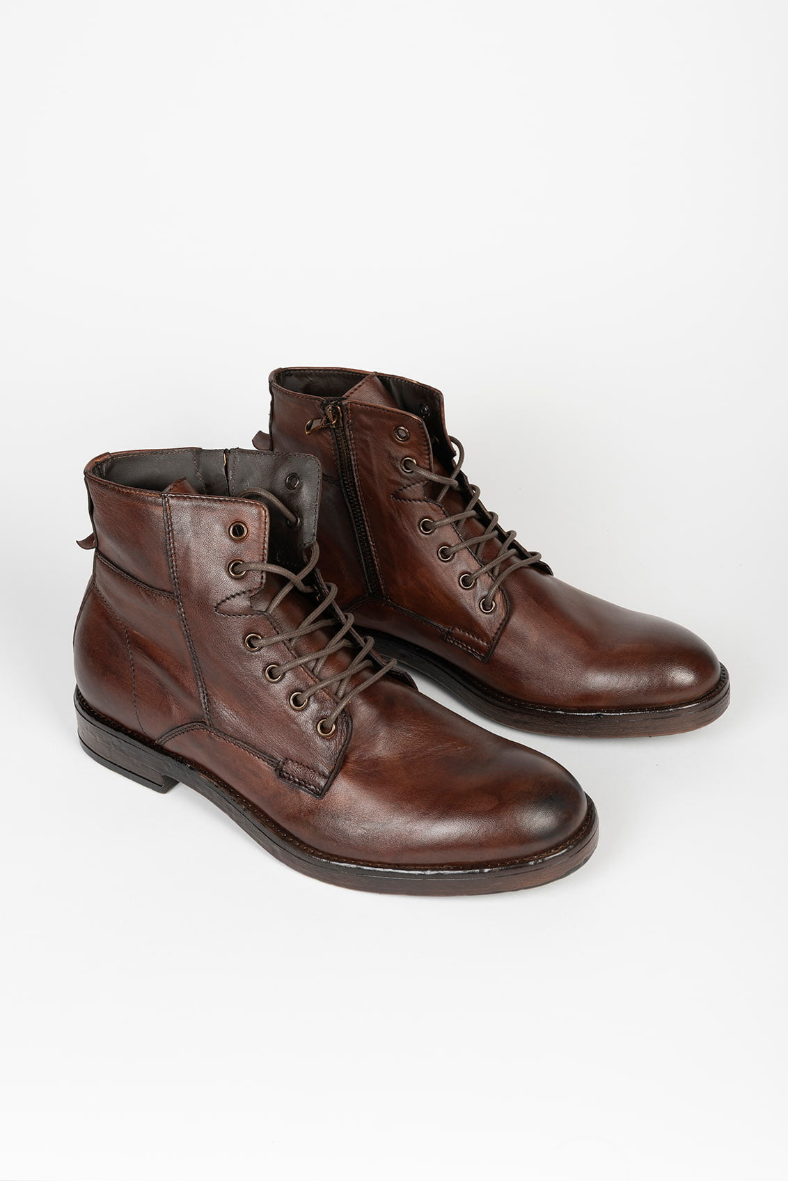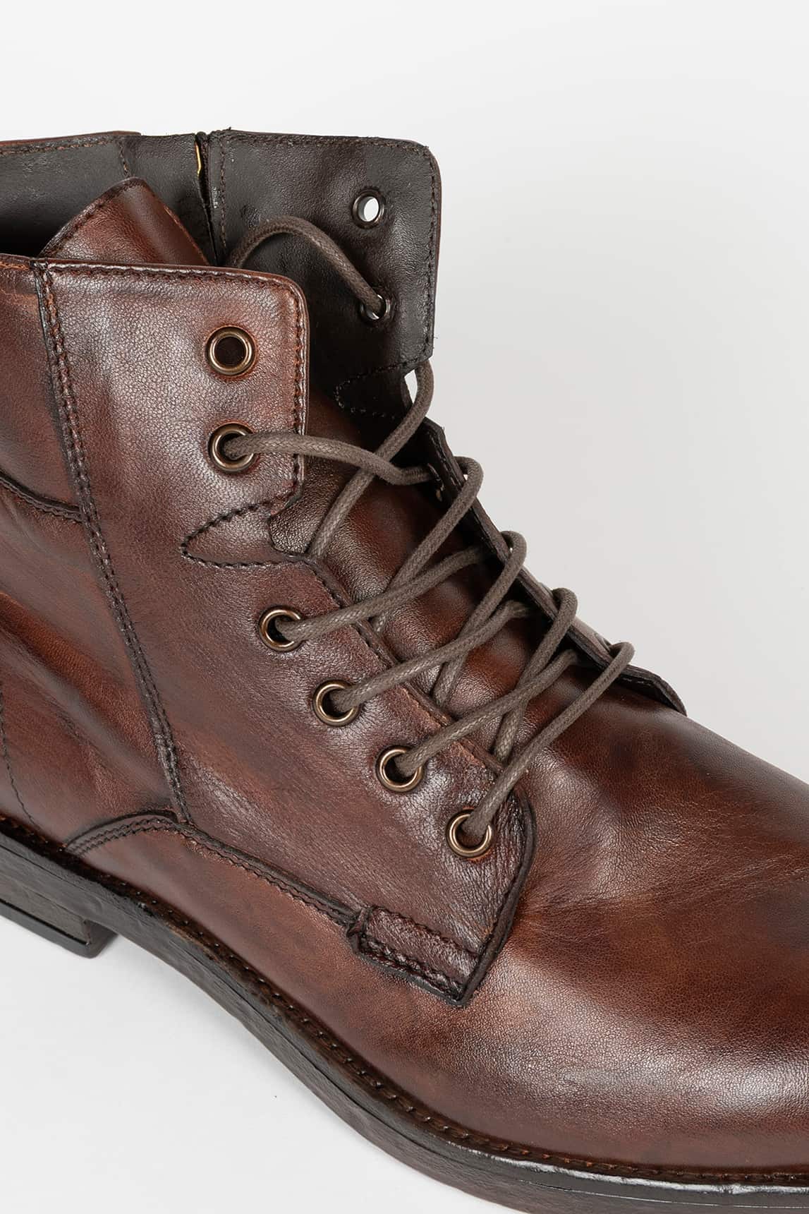 Botines de piel marrón con cordones