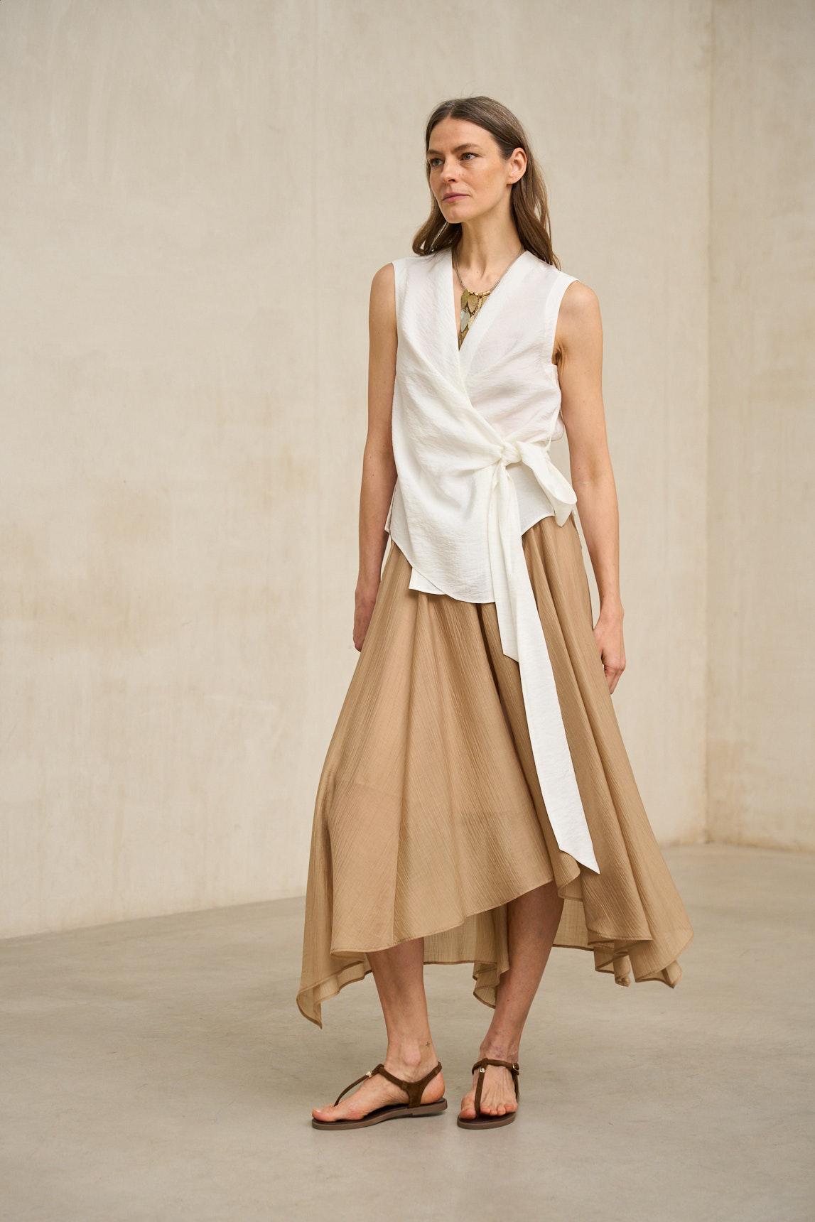 La Camisa Zarev blanco ofrece una versión más nítida y luminosa del diseño envolvente. Su escote en pico y su estructura cruzada estilizan la figura, mientras que la lazada lateral aporta un detalle dinámico y femenino. El tejido ligero acompaña el movimiento con naturalidad, manteniendo una silueta limpia y depurada. En blanco, la prenda adquiere un carácter más fresco y versátil, ideal para estilismos monocromáticos, conjuntos de verano o combinaciones con tonos oscuros que generen contraste. Una pieza elegante y minimalista que aporta luz y definición al look. Nos esforzamos por mostrar los colores de la forma más fiel posible, pero pueden variar ligeramente respecto a la realidad.