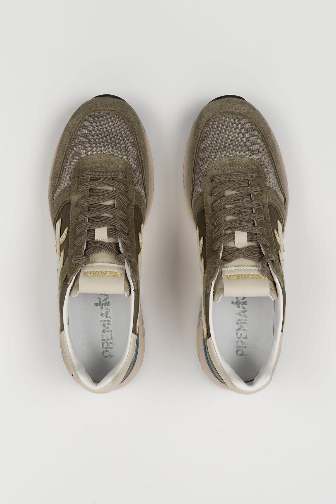 O modelo Premiata Mick 8086 apresenta uma combinação de tons bege e verde suave que reforça o seu carácter natural e versátil. O design mistura camurça e tecido técnico para criar uma silhueta leve com uma presença sofisticada. O logótipo lateral e a sola com estampado exclusivo reforçam a identidade da marca italiana. A sua construção confortável e acolchoada torna-as uma escolha prática sem abdicar do estilo. Um modelo perfeito para looks descontraídos e de inspiração urbana, que traz um equilíbrio entre o desporto e a elegância. Esforçamo-nos por exibir as cores da forma mais precisa possível, mas podem variar ligeiramente da realidade.