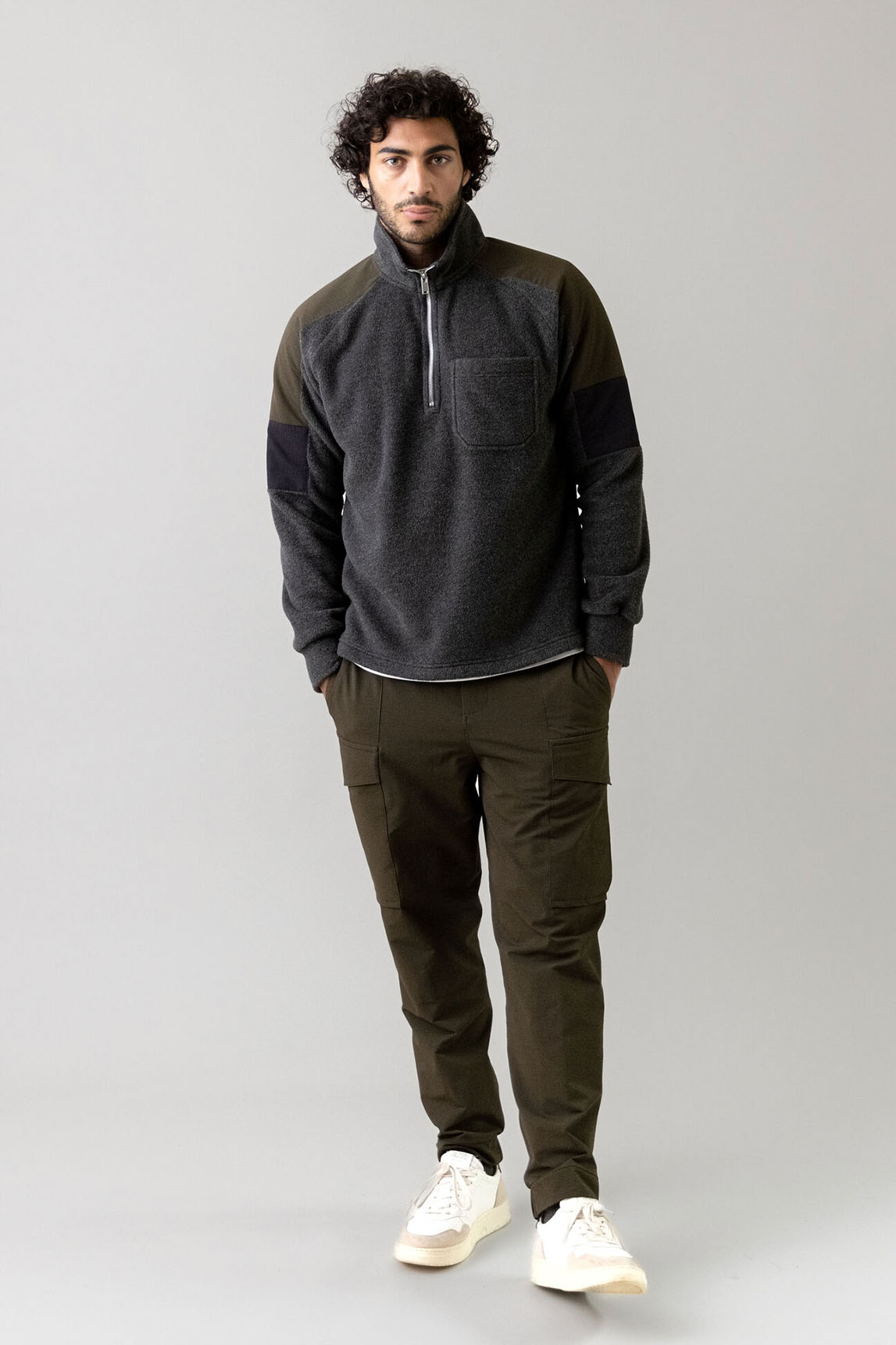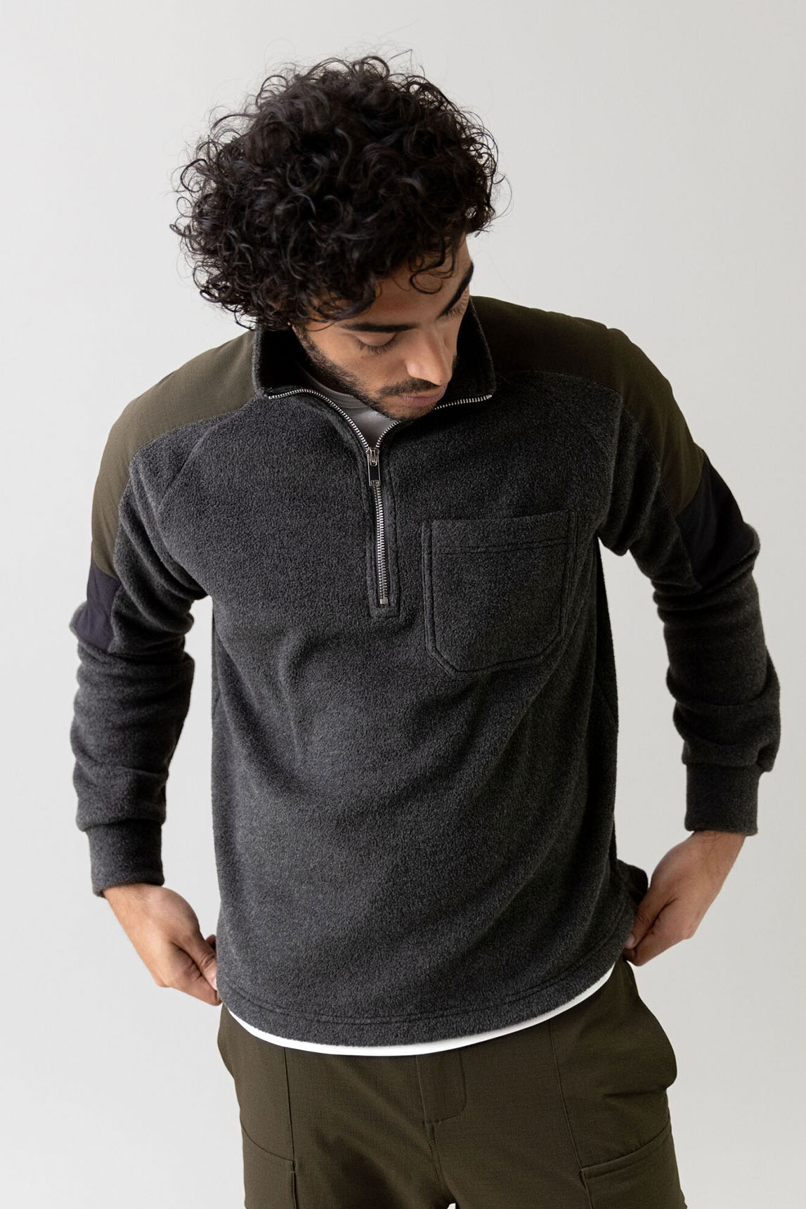 - Sudadera tipo fleece con media cremallera.