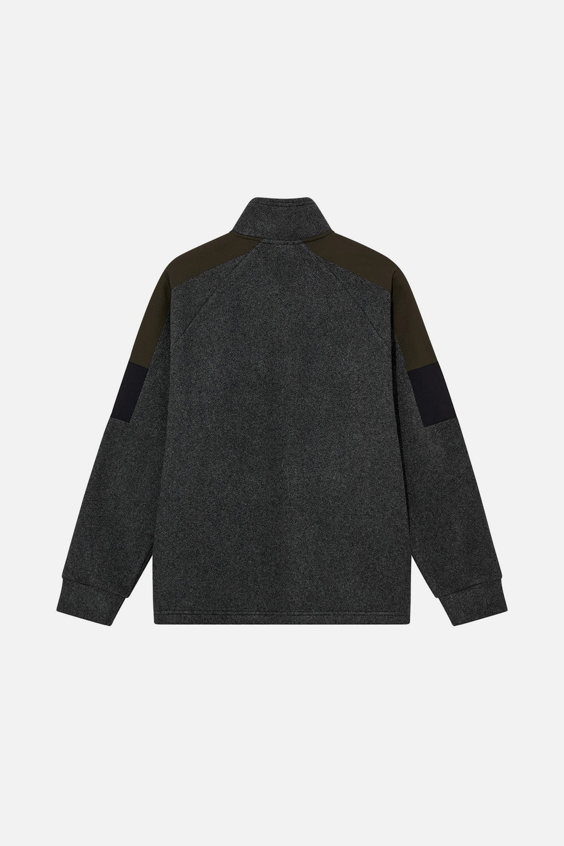 - Paneles en contraste en hombros y mangas.